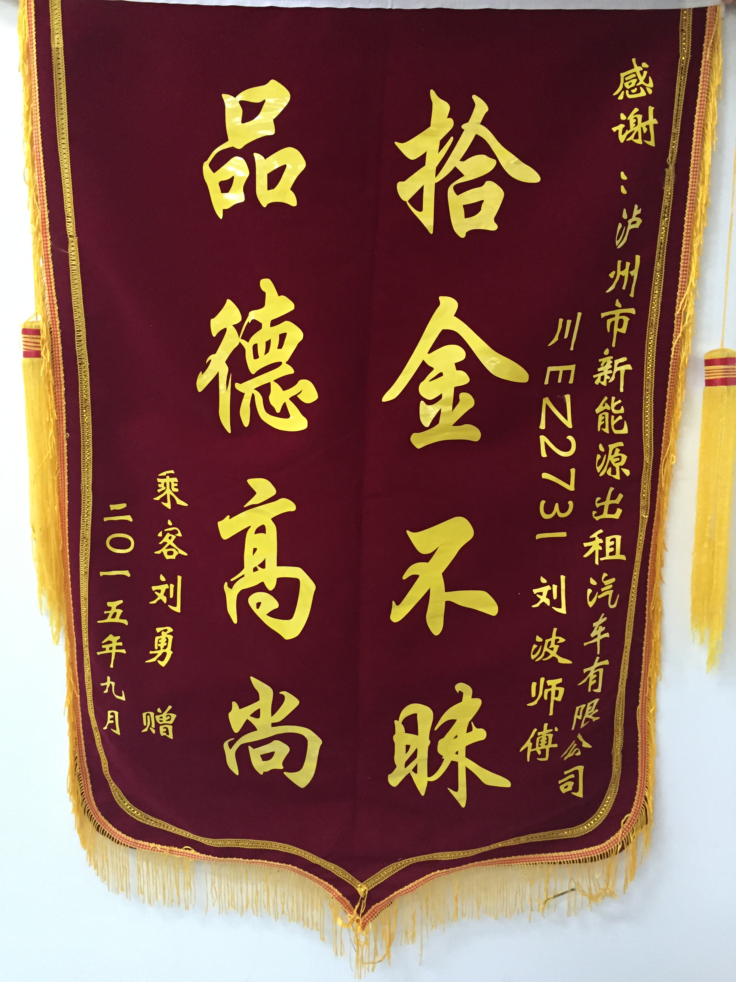 川EZ2731駕駛員劉波9月9日拾到含身份證、行駛證等證件的卡包一個(gè),已交還乘客。乘客送