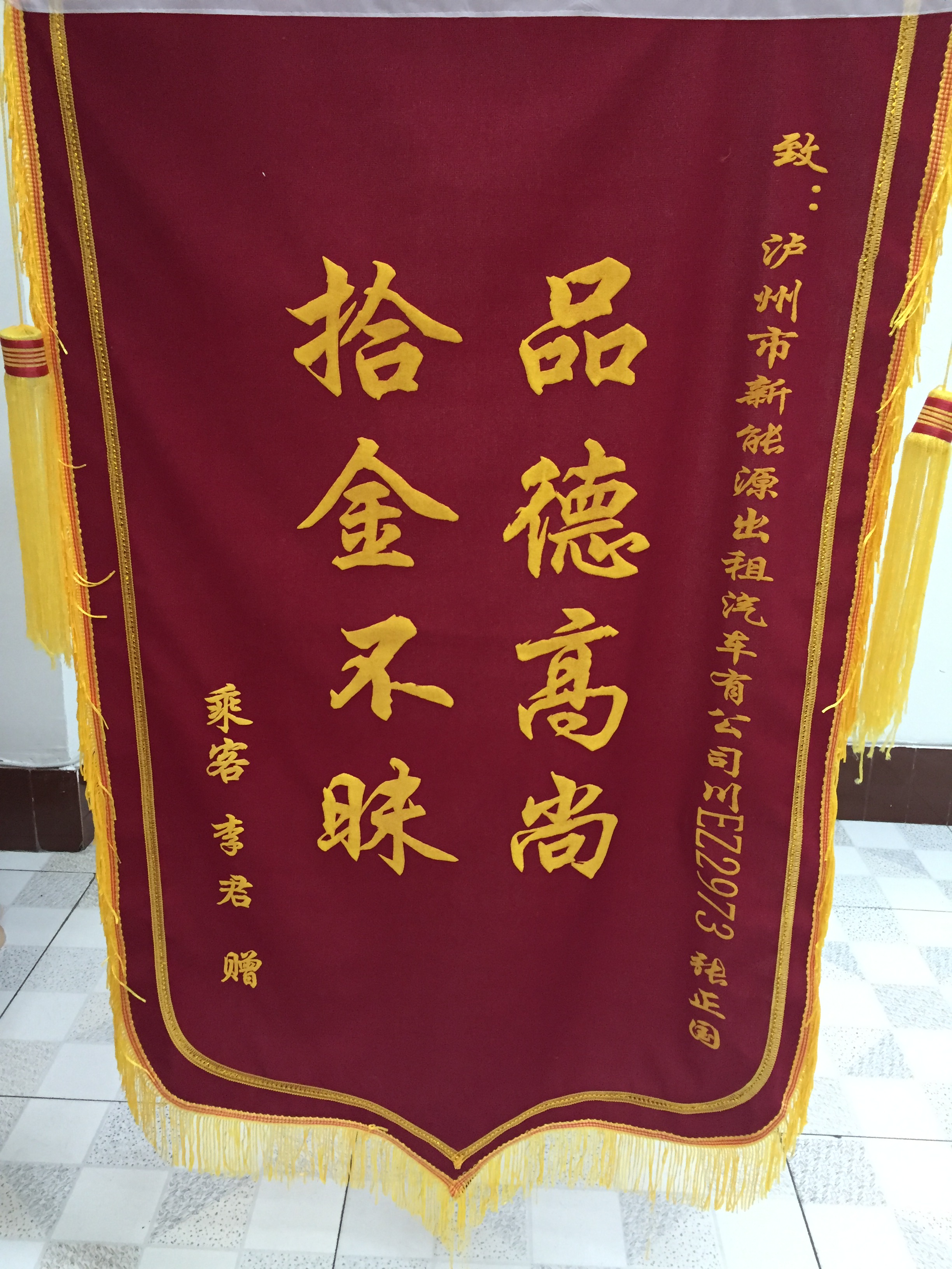 川EZ9202駕駛員羅強(qiáng)于5月7日撿到乘客王燕重要資料,及時(shí)交還乘客。乘客送來錦旗感謝